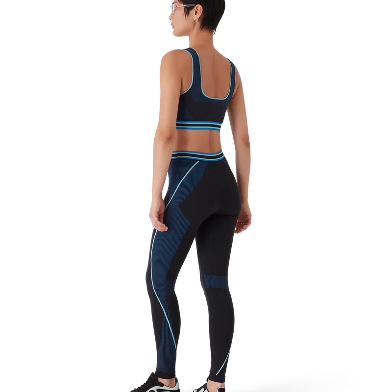 Los leggings sin costuras presentan un diseño largo inspirado en la ropa deportiva, confeccionado con un tejido elástico. Cuentan con una cintura elástica que luce el logotipo «Casablanca» de la casa, el logotipo entrelazado «CC» característico de la casa y detalles de paneles.