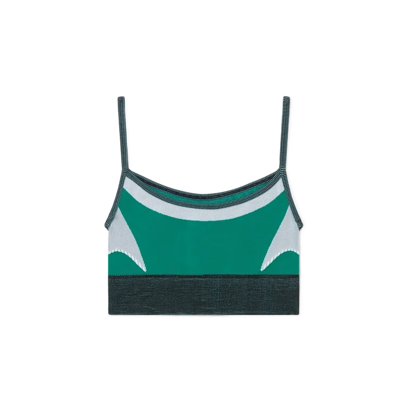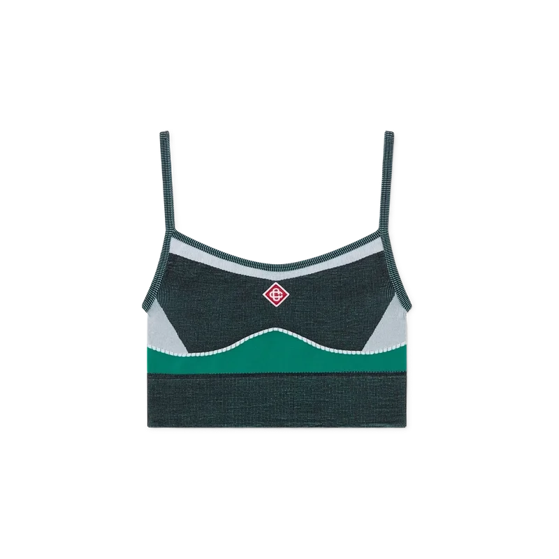 El sujetador sin costuras Casa Sport es un diseño inspirado en la ropa deportiva que presenta el Diamond Monogram característico de la casa. Esta prenda está confeccionada con un tejido elástico sin costuras que cuenta con paneles de colores con distintos niveles de resistencia que proporcionan sujeción a quien lo lleva, y se completa con tirantes finos.