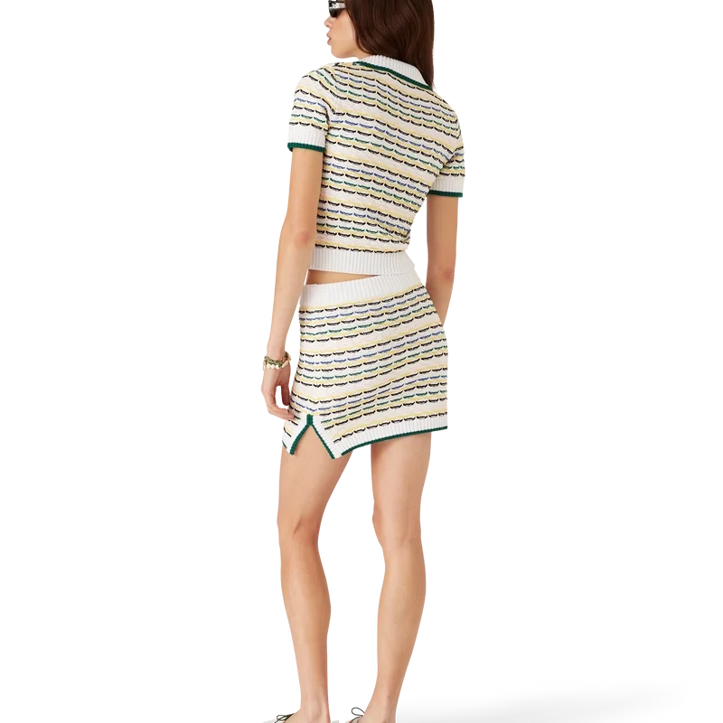 La minifalda de punto de algodón con puntada plisada es un diseño de pantalón corto confeccionado en tejido de algodón. Se completa con una cintura elástica acanalada, aberturas laterales y dobladillo con detalles de bordes en contraste.