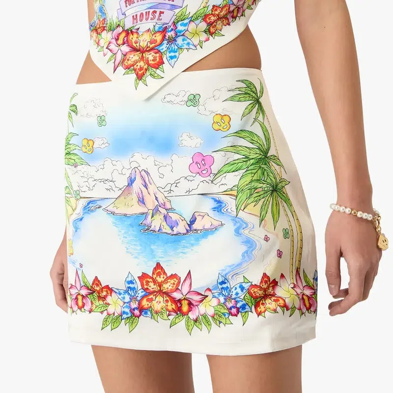 La minifalda de satén de seda Better Days presenta un refinado diseño en línea A con el estampado Better Days de esta temporada, que describe la visión utópica de Ibiza como destino de una peregrinación casi religiosa de descubrimiento a través de su diverso panorama musical. Cuenta con cierre de cremallera y una silueta ajustada; diseñada para llevarse con el top de pañuelo a juego.