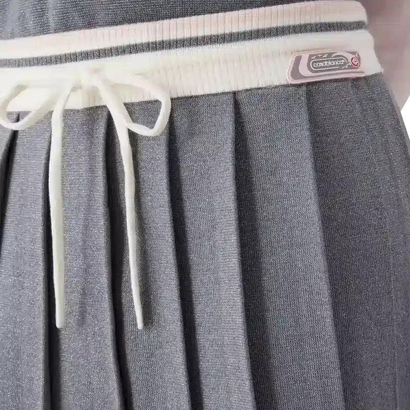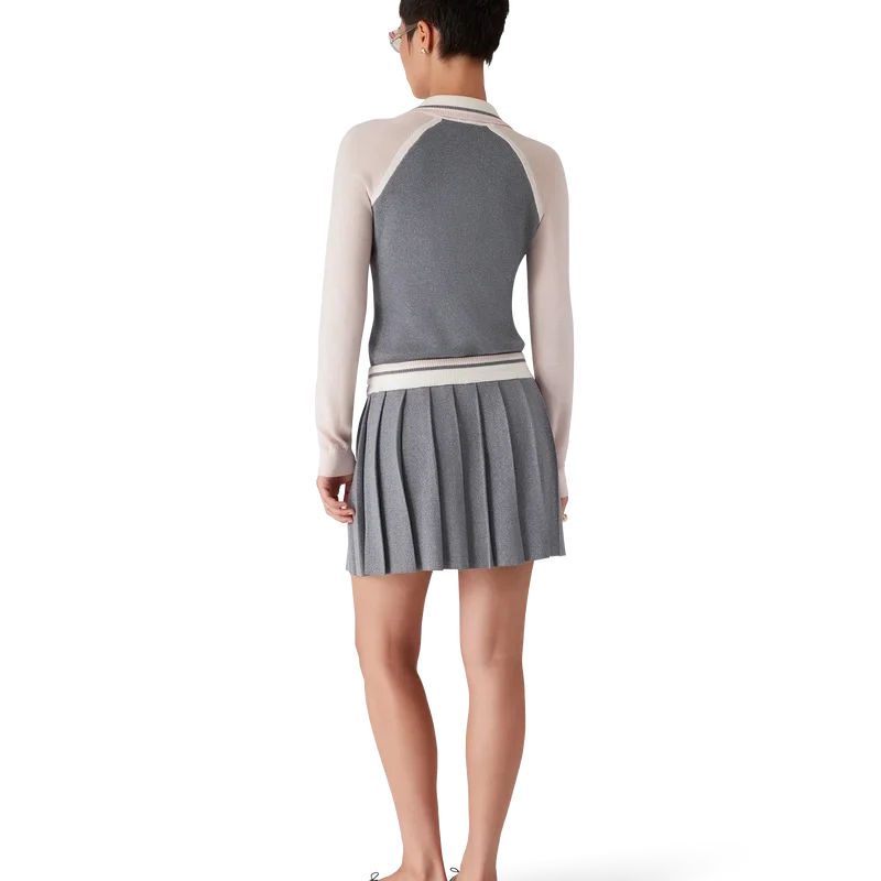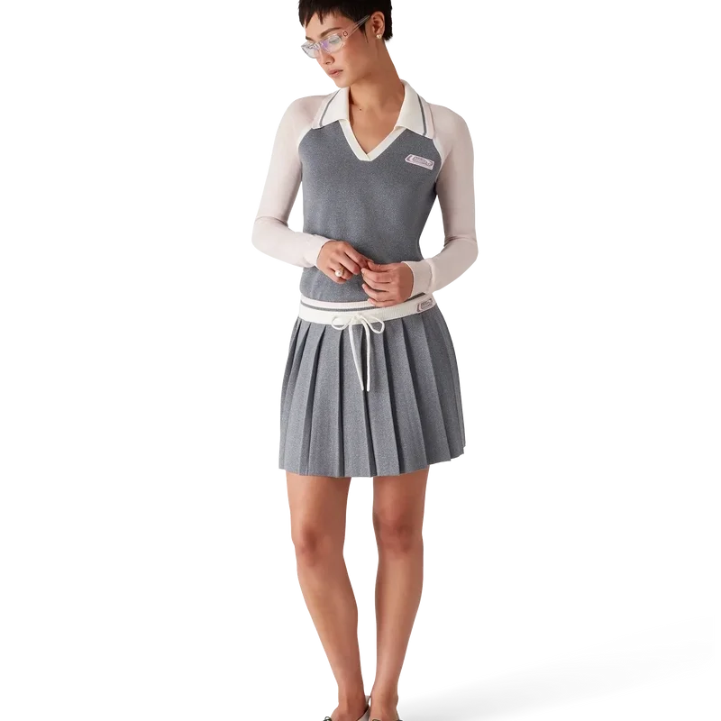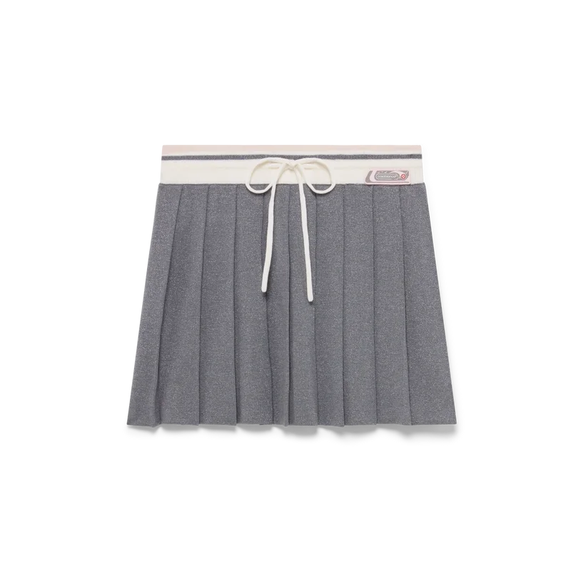 La falda de tenis de punto de merino es un diseño clásico confeccionado en lana merino. Se completa con un canesú plisado, una cintura acanalada en contraste y cierre con cordón.
