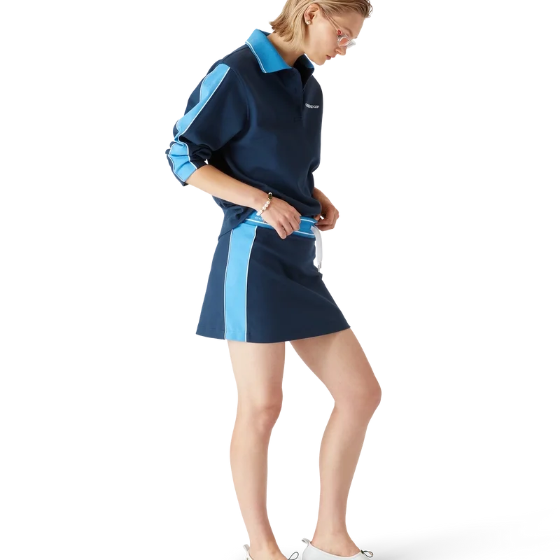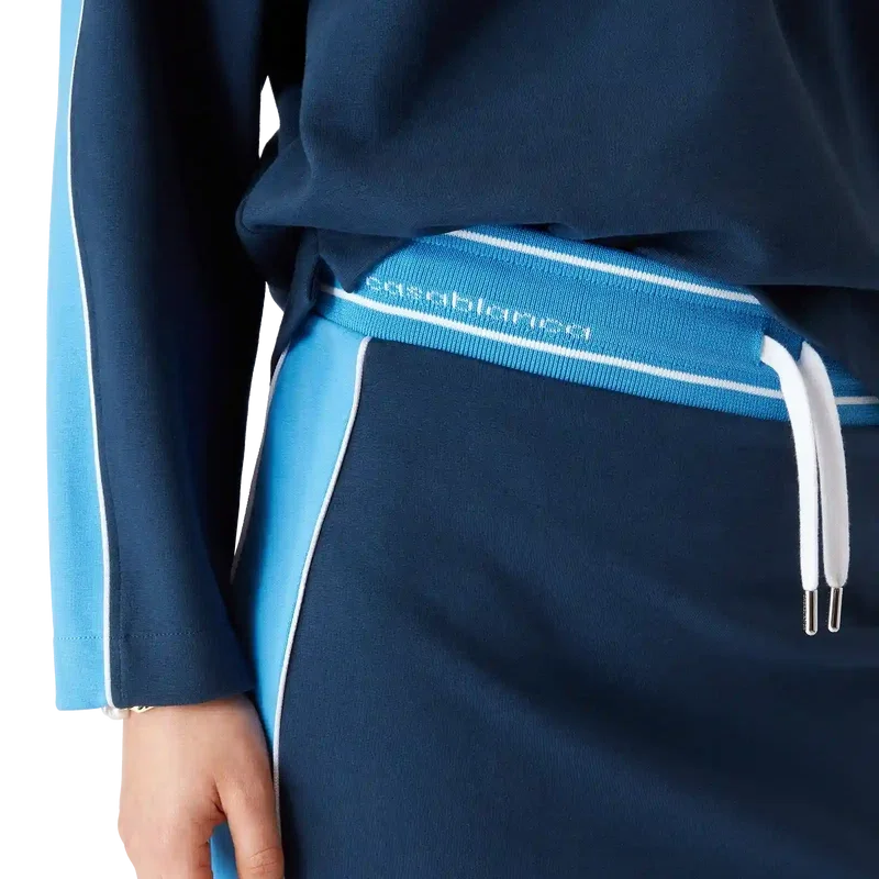La minifalda Punto tiene un diseño refinado con el logotipo de Casablanca. Cuenta con una cintura elástica con detalles de rayas, cierre con cordón, detalles de rayas en los laterales y una silueta holgada.