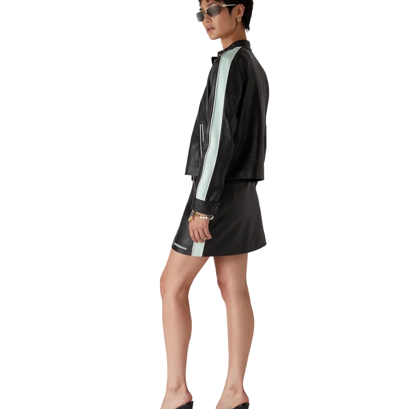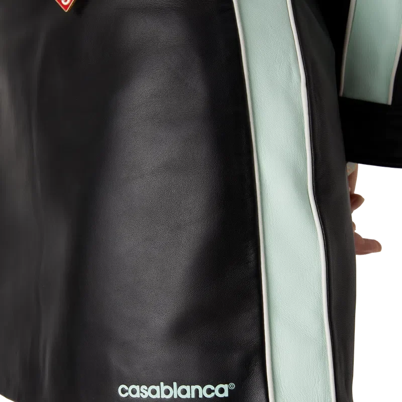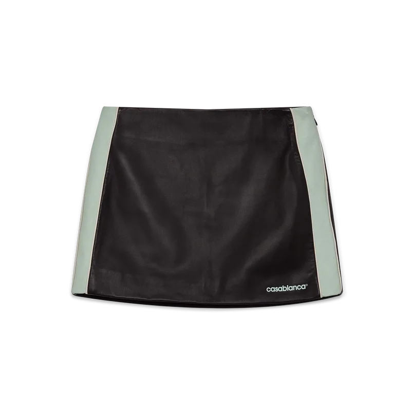 La minifalda de cuero es un diseño ajustado confeccionado en napa de cordero. Se completa con una cintura, detalles de rayas a los lados y el logotipo Casablanca de la casa en el dobladillo.
