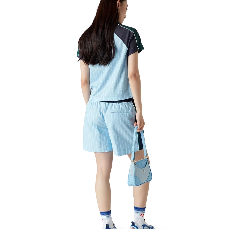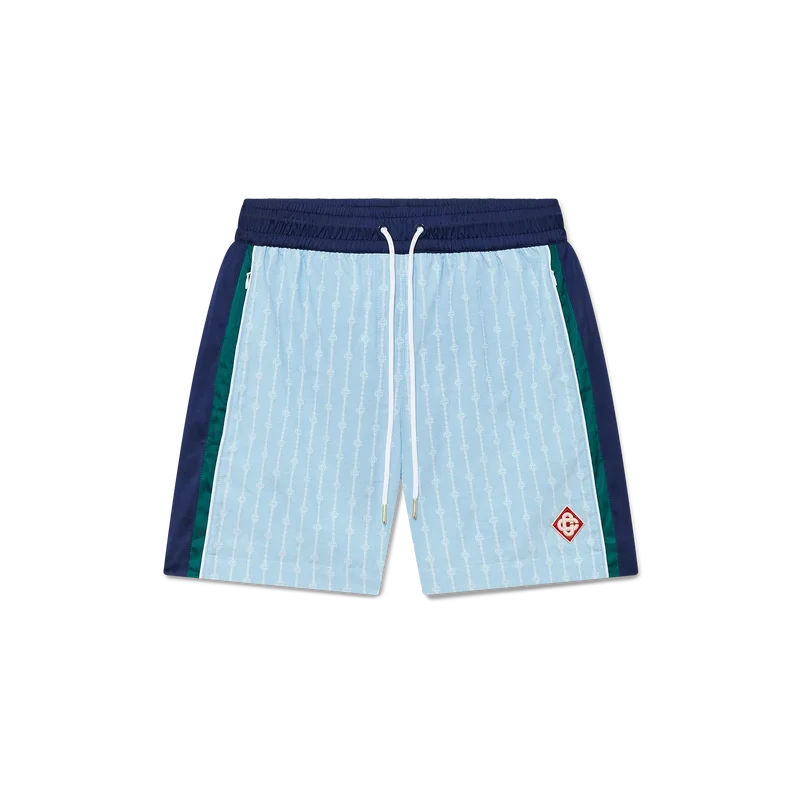 Los pantalones cortos de chándal a rayas son un diseño deportivo confeccionado en tejido de algodón con el logotipo entrelazado «CC» de la casa. Se completan con el logotipo del diamante característico, una cintura elástica, cordón de ajuste con puntas doradas, bolsillos laterales en las costuras con cierre de cremallera, detalle de rayas en los laterales y un bolsillo trasero ribeteado con cierre de cremallera.