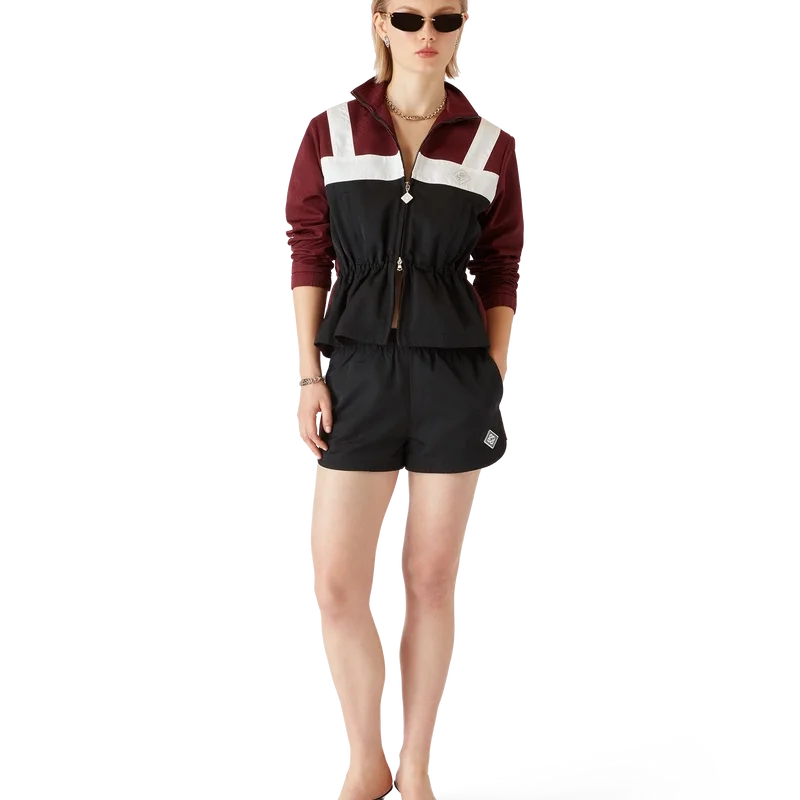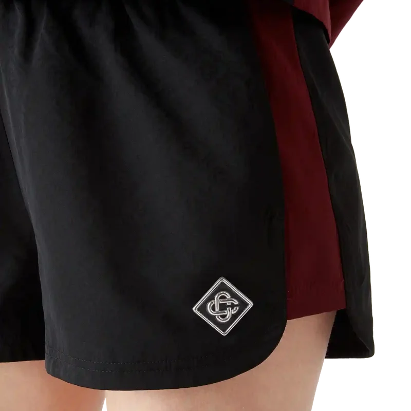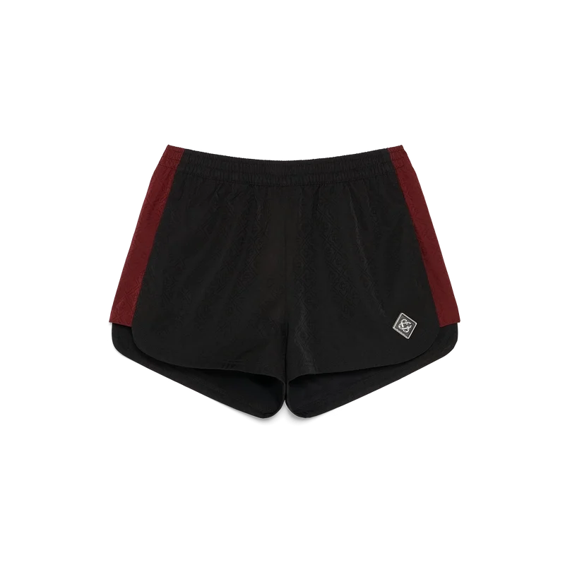 Los pantalones cortos de nylon con monograma son un diseño clásico que luce el logotipo del diamante plateado de la casa. Cuentan con una cintura elástica, cierre con cordón, forro de poliéster y bolsillos laterales en las costuras.