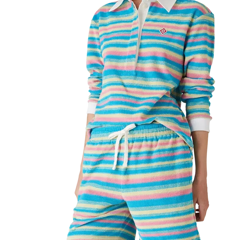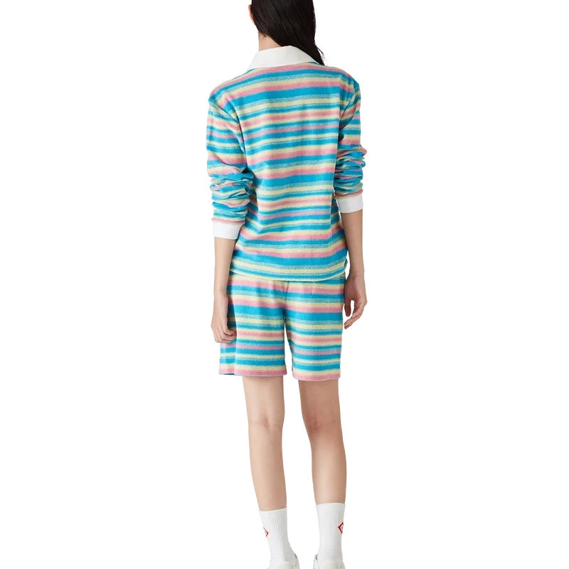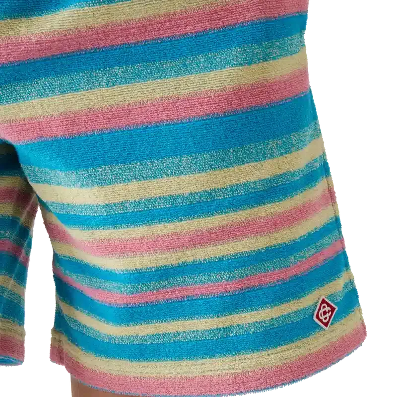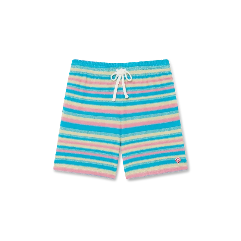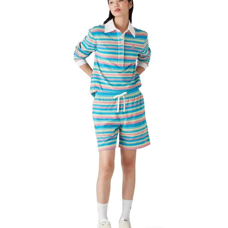 Los pantalones cortos de rizo a rayas son un modelo clásico confeccionado en tejido de rizo y decorado con el emblemático logotipo de diamante de la casa. Cuentan con cintura elástica, cierre con cordón, bolsillos laterales en las costuras y un bolsillo de parche en la parte trasera.