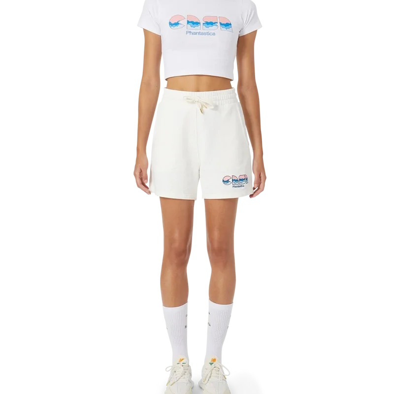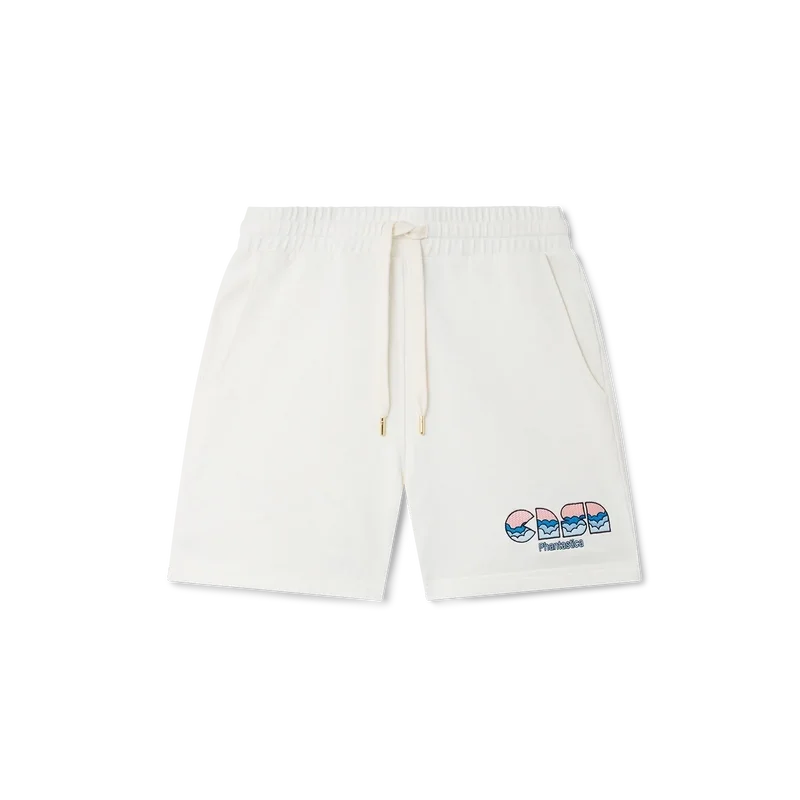 Los pantalones cortos de sudadera Casa Clouds presentan un diseño bordado en tonos azules y rosas inspirado en Phantasticas, el nombre original de los alucinógenos. El diseño busca nuestra reconexión con la tierra y manifiesta la capacidad de la naturaleza para sanar el espíritu. Se completan con un cordón de cierre con puntas doradas, bolsillos laterales y traseros, y una etiqueta con la marca Casablanca Paris. Diseñados para tener un ajuste relajado y terminar en la cintura alta.