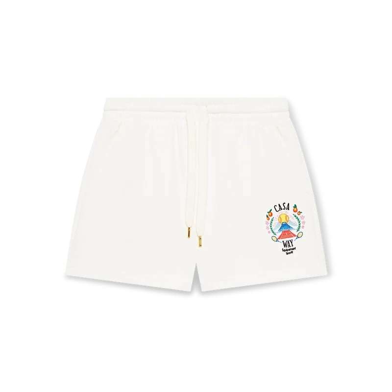 Los pantalones cortos de chándal Casa Way Mountain son una prenda deportiva confeccionada en tejido de algodón orgánico que presenta el diseño de temporada de la marca reinterpretado para esta temporada. Cuentan con una cintura elástica con cordón de ajuste con puntas doradas, bolsillos en las costuras y un bolsillo de parche en la parte trasera.