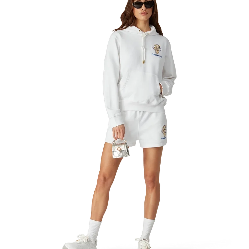 Los pantalones cortos de sudadera Diamond Column son un diseño clásico confeccionado en tejido de algodón orgánico con la iconografía de la casa representada por una columna. Se completan con un cordón de cierre con puntas doradas, bolsillos laterales en las costuras y un bolsillo de parche en la parte trasera.