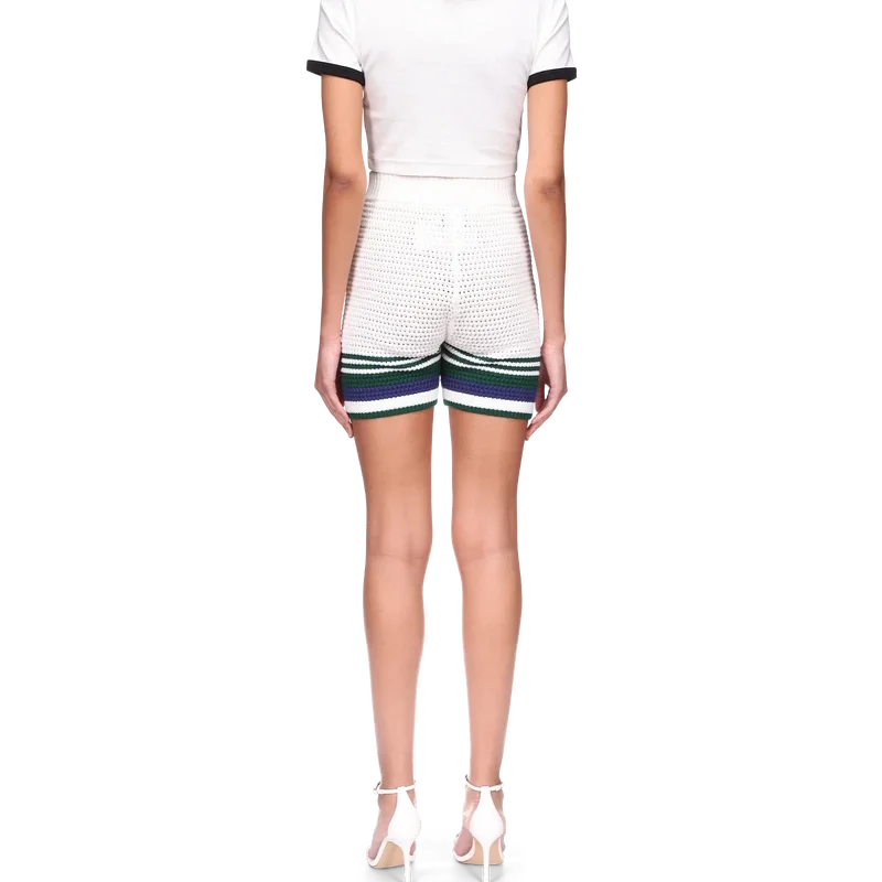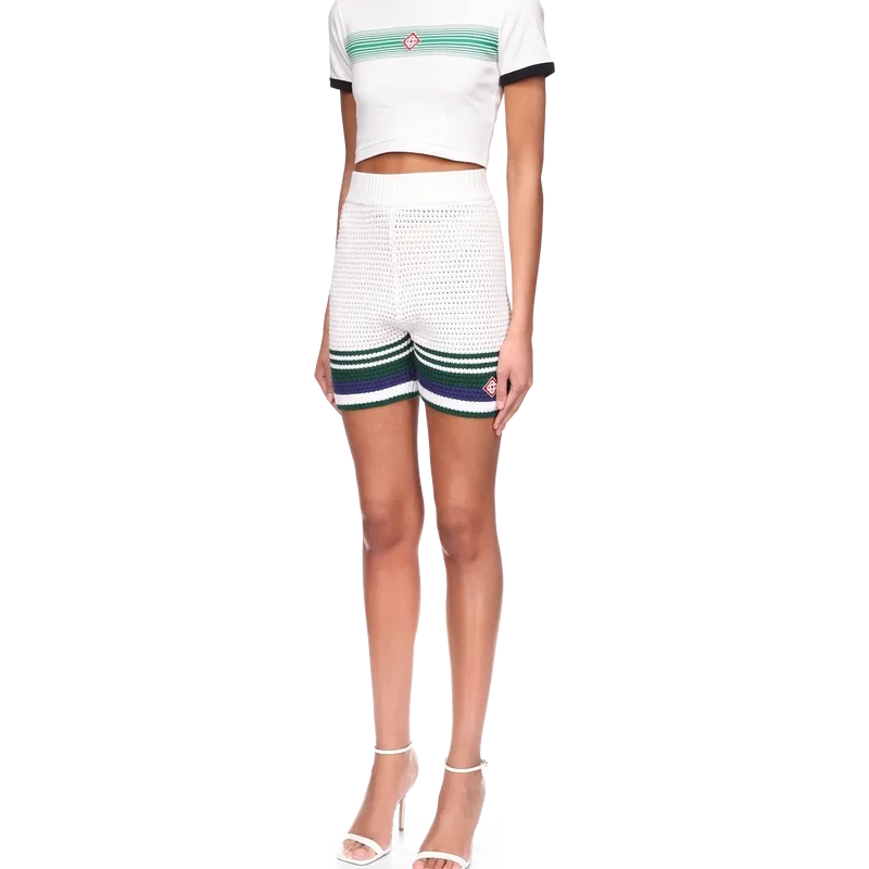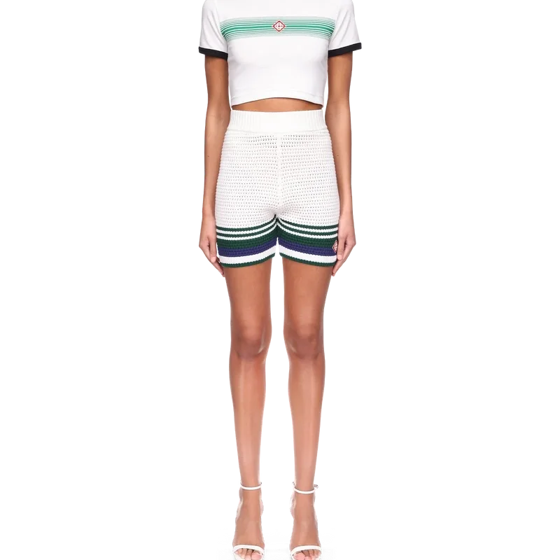 Los pantalones cortos de tenis de ganchillo para mujer presentan un diseño de textura suave confeccionado en tejido de algodón de punto, con el logotipo de diamantes entrelazados Cc característico de la casa. Acabados con un detalle de rayas en contraste en el dobladillo y una cintura elástica.