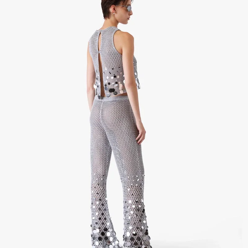 Sé el primero en valorar “Pantalones de ganchillo plateado con efecto espejo”