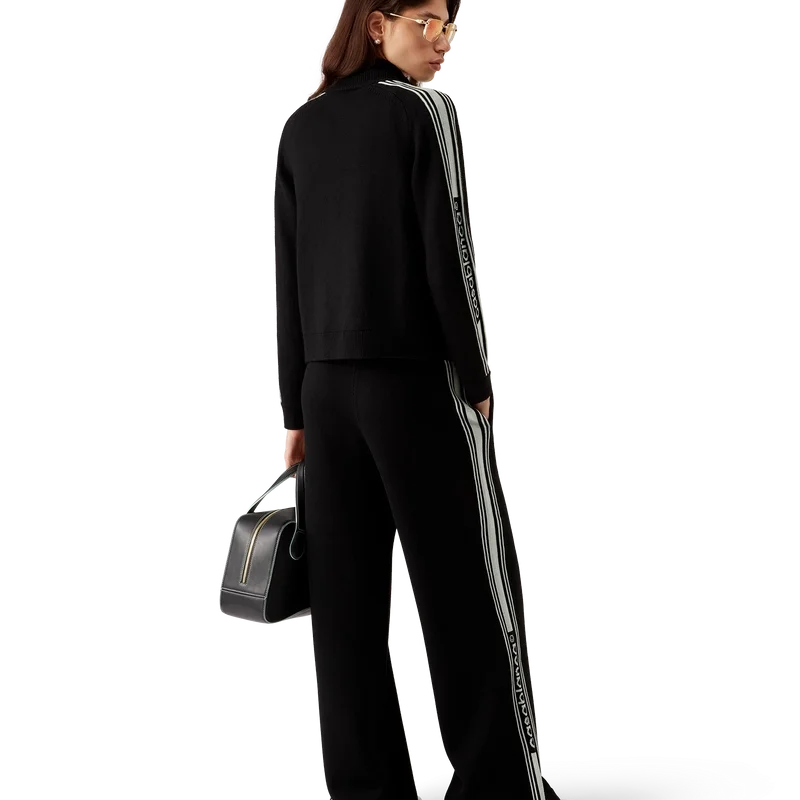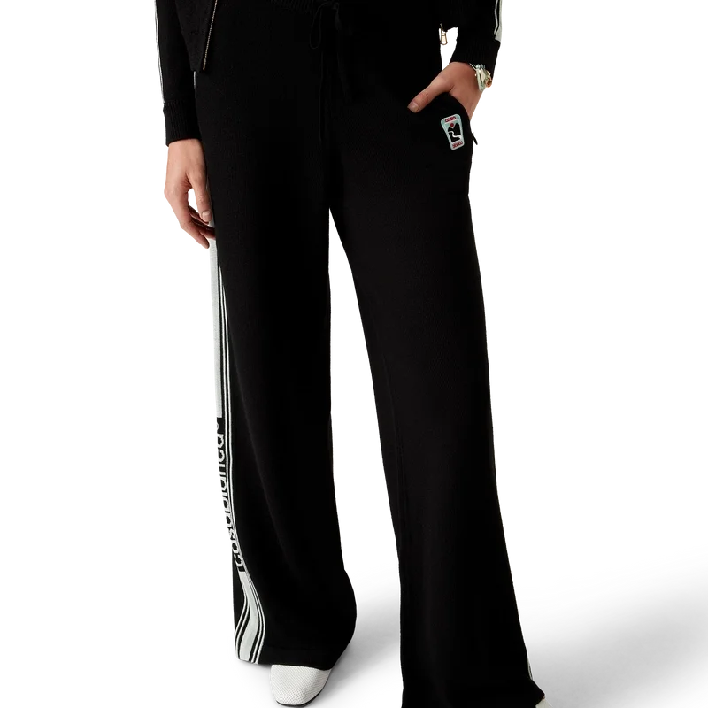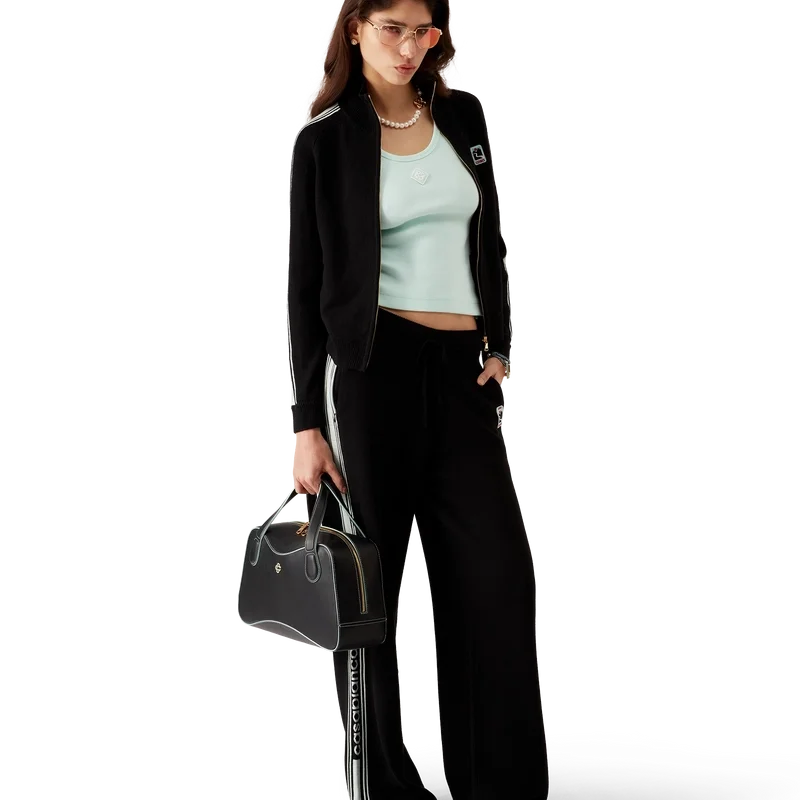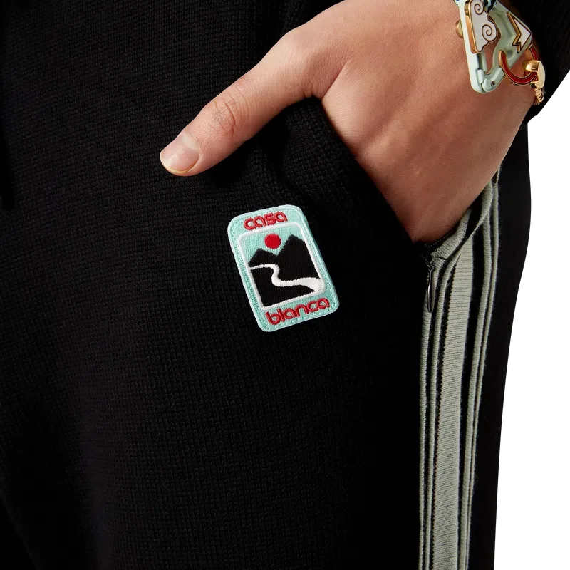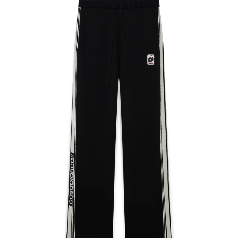 Los pantalones deportivos de punto de merino son un diseño de punto de pierna recta confeccionado con tejido de lana merino. Cuentan con cintura elástica, cierre con cordón, bolsillos en las costuras, un bolsillo trasero de parche, detalles de rayas en los laterales y el logotipo de Casablanca.