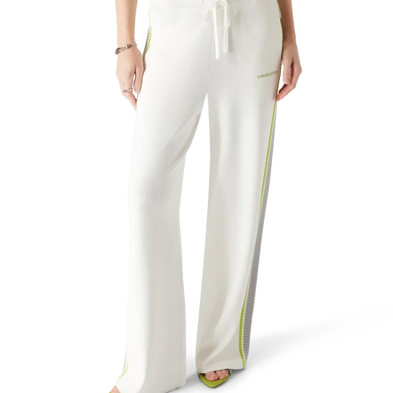 Los pantalones de tenis son un diseño de corte recto inspirado en la ropa deportiva que luce el logotipo Casablanca de la casa. Se completan con una cintura elástica acanalada, cierre con cordón, bolsillos en las costuras, un bolsillo de parche trasero, detalles en los paneles laterales y una silueta holgada.