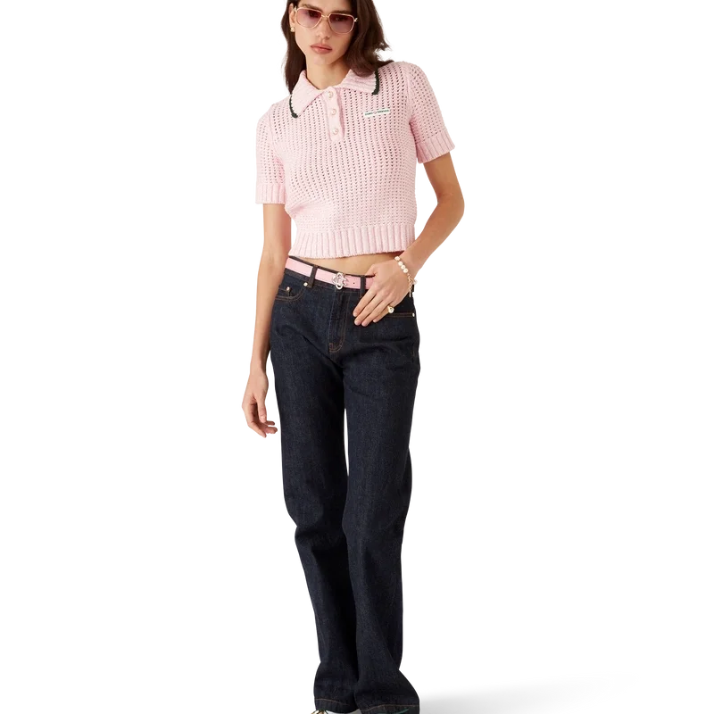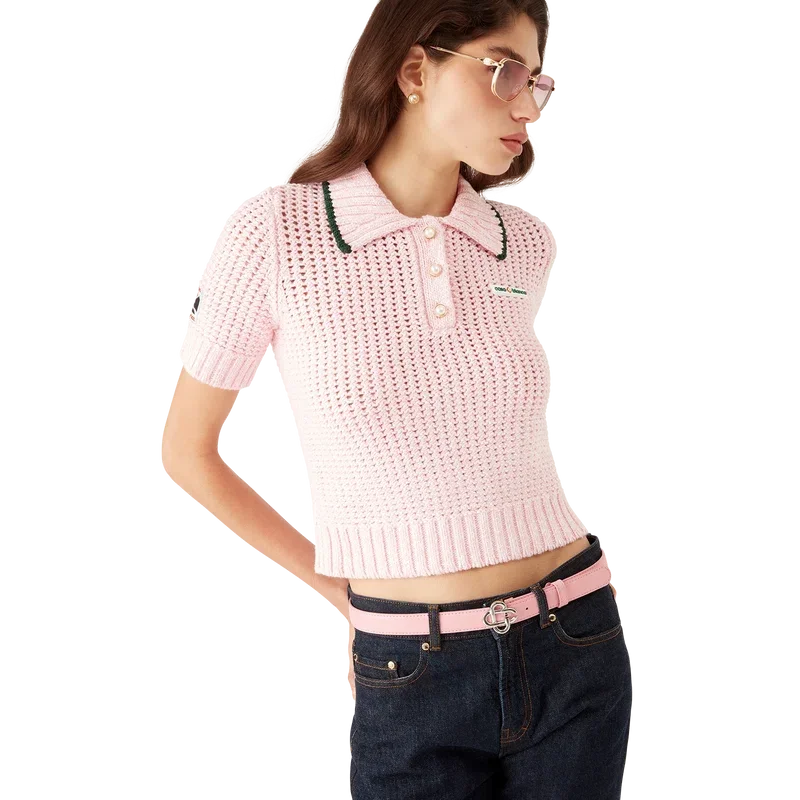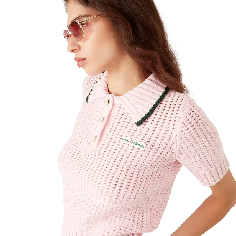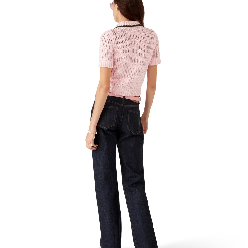 La camiseta de algodón Moulina es un diseño clásico confeccionado en tejido de algodón Moulina. Cuenta con cierre de botones, botones de perla con borde dorado característicos, cuello acanalado, puños, dobladillo y tapeta.
