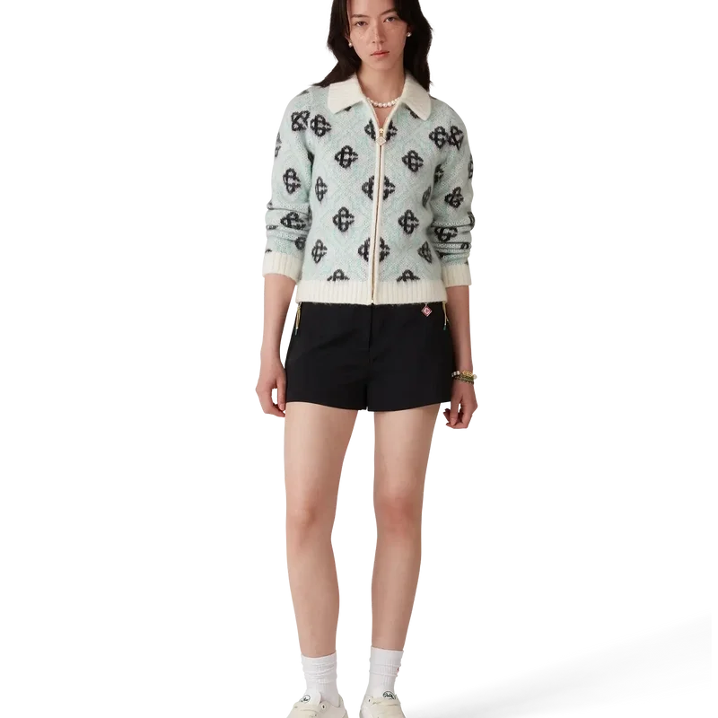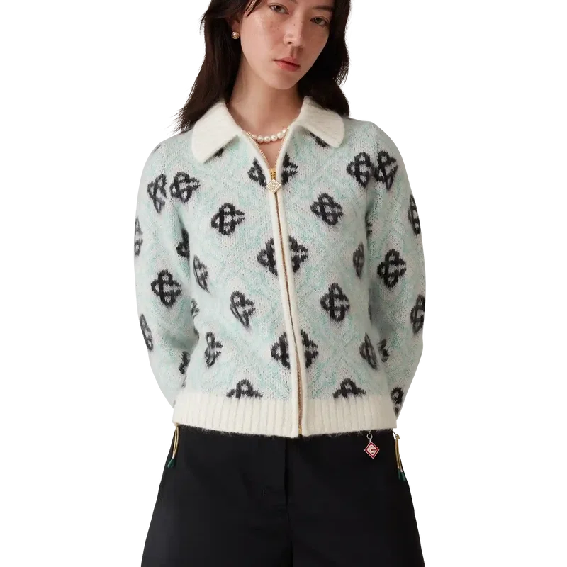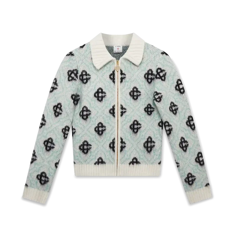 El suéter con cremallera y monograma de mohair es un diseño de manga larga que presenta el monograma entrelazado CC característico de la casa tejido en la tela. Se completa con un cierre de cremallera, una lengüeta de cremallera con el logotipo de diamante característico y cuello, puños y dobladillo acanalados.