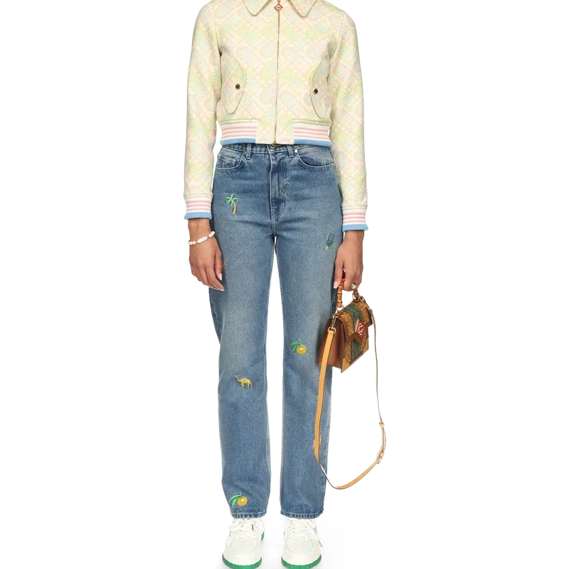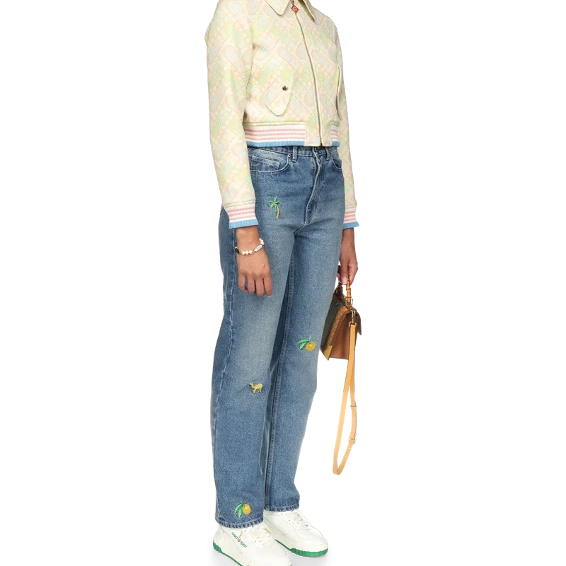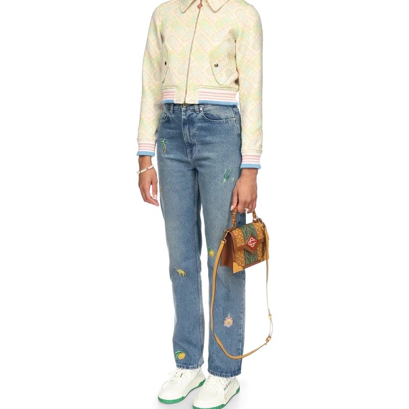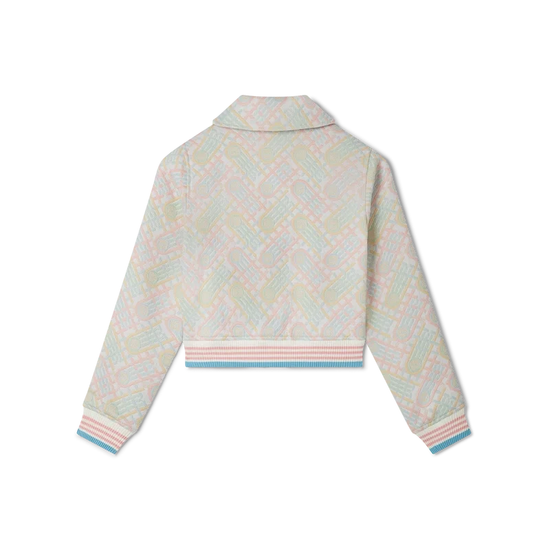 La chaqueta bomber Ping Pong es un modelo de pantalones cortos de manga larga con una silueta familiar que presenta el estampado característico de la casa con pelotas de ping pong en movimiento, tomado de la colección Japan. Confeccionada en tejido de lana virgen con monograma de ping pong y rematada con bolsillos delanteros con herrajes chapados en oro, ribete en contraste en el dobladillo y los puños, cuello, cierre frontal con cremallera con el logotipo de diamante y etiqueta con la marca Casablanca.