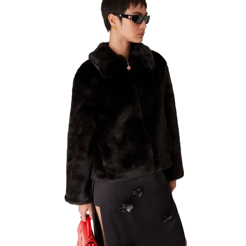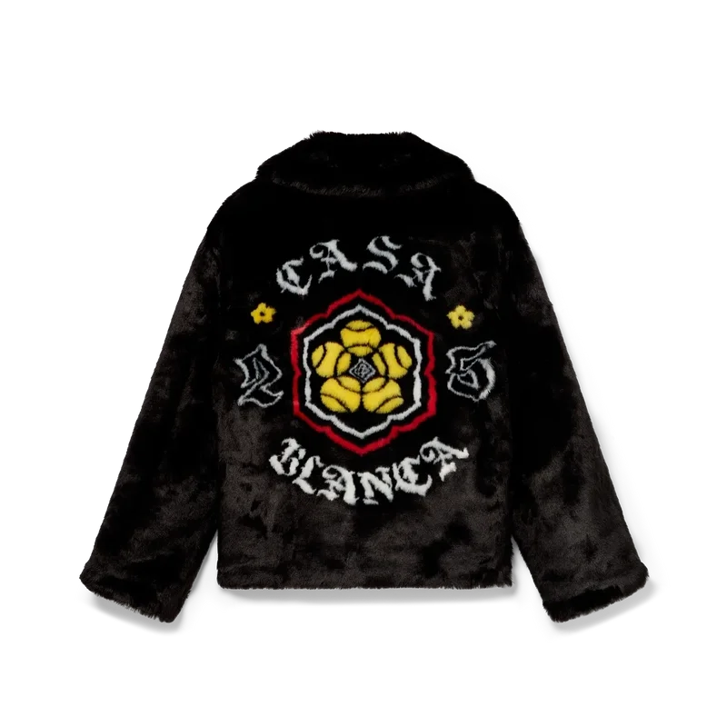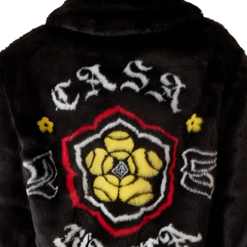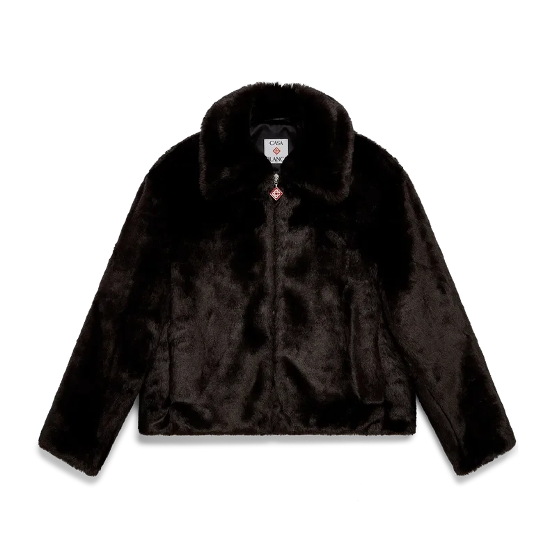 La chaqueta de piel sintética es una prenda de ropa de abrigo de manga larga que presenta los motivos artísticos de la temporada, en la que nos hemos inspirado en la subcultura japonesa del BōSōZoku como uno de nuestros temas principales. Cuenta con forro, cierre de cremallera con la lengüeta con el logotipo del diamante característico de la casa, bolsillos verticales ribeteados y forro.