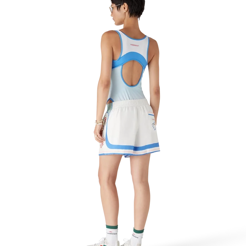 El traje de baño Fuji Dream presenta un diseño estampado con ilustraciones en aerógrafo —una nueva técnica utilizada en toda esta colección— y está confeccionado con un tejido técnico transpirable para trajes de baño. Se completa con corte alto en las piernas, cuello redondo, espalda con aberturas y el diseño de temporada de la casa en el pecho.