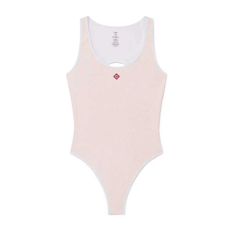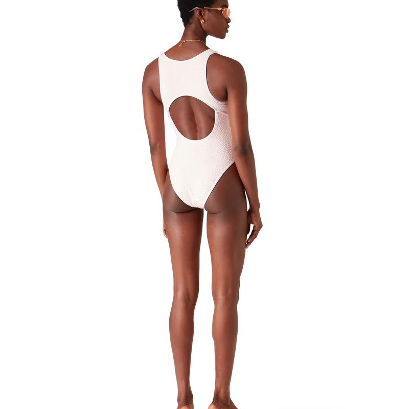 El traje de baño Monogram es un diseño de una pieza que presenta el estampado Monogram de la casa y el emblemático logotipo de diamantes. Se completa con ribetes en contraste, corte alto en las piernas, espalda con aberturas y cuello redondeado.