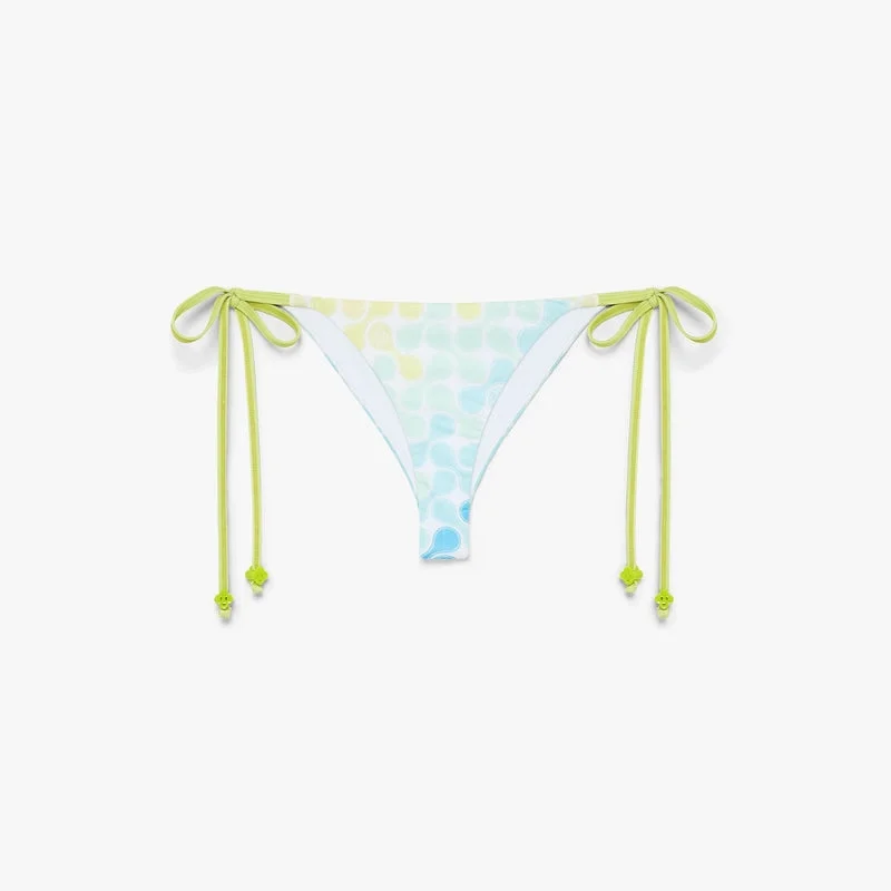 La braguita de bikini con cordones y cuentas Optic Drop presenta un diseño estampado confeccionado en tejido transpirable, con el motivo Tennis Tile de la temporada, que combina logotipos entrecruzados y pelotas de tenis mezclados con el degradado de la temporada. Se completa con cierres de cordones y el remache con el logotipo CC entrelazado de la casa. Diseñada para llevarse con su top de bikini a juego.