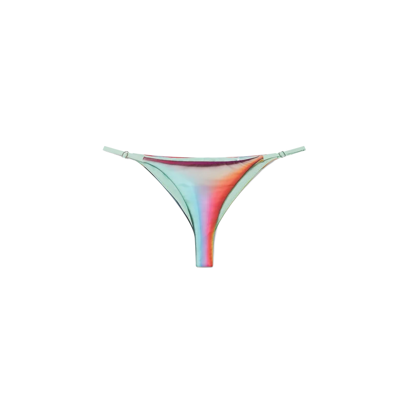 La braguita de bikini con degradado de cristal es un diseño clásico que presenta el diseño exclusivo de la temporada, creado en colaboración con Martin Naumann, conocido por su trabajo que combina efectos de degradado y textura con semitonos y efectos similares al cristal. Se completa con el logotipo Warped de la casa. Diseñada para llevarse con el top de bikini a juego.
