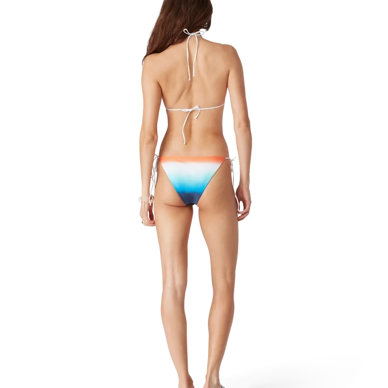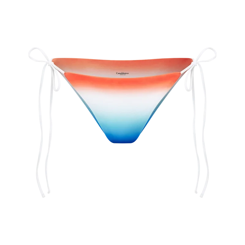 La braguita de bikini Gradient es un diseño estampado confeccionado con un tejido técnico transpirable, que presenta una paleta sobria de azul, aguamarina, blanco y naranja en un degradado de colores creado especialmente para la colección a partir de un tejido técnico. Se completa con ribetes blancos y cierre de cordones, y cuenta con el remache CC entrelazado característico de la casa. Diseñada para llevarse con su top a juego.