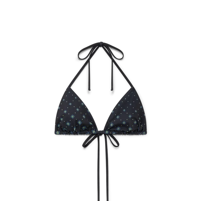 El top de bikini triangular con monograma negro degradado es un diseño refinado que presenta el patrón de monograma negro de la casa con cierre de tiras. Completado con cierre de tiras con puntas doradas, copas con soporte extraíbles y el remache CC entrelazado chapado en oro característico de la casa en la copa izquierda, esta pieza está diseñada para llevarse con la braguita de bikini a juego.