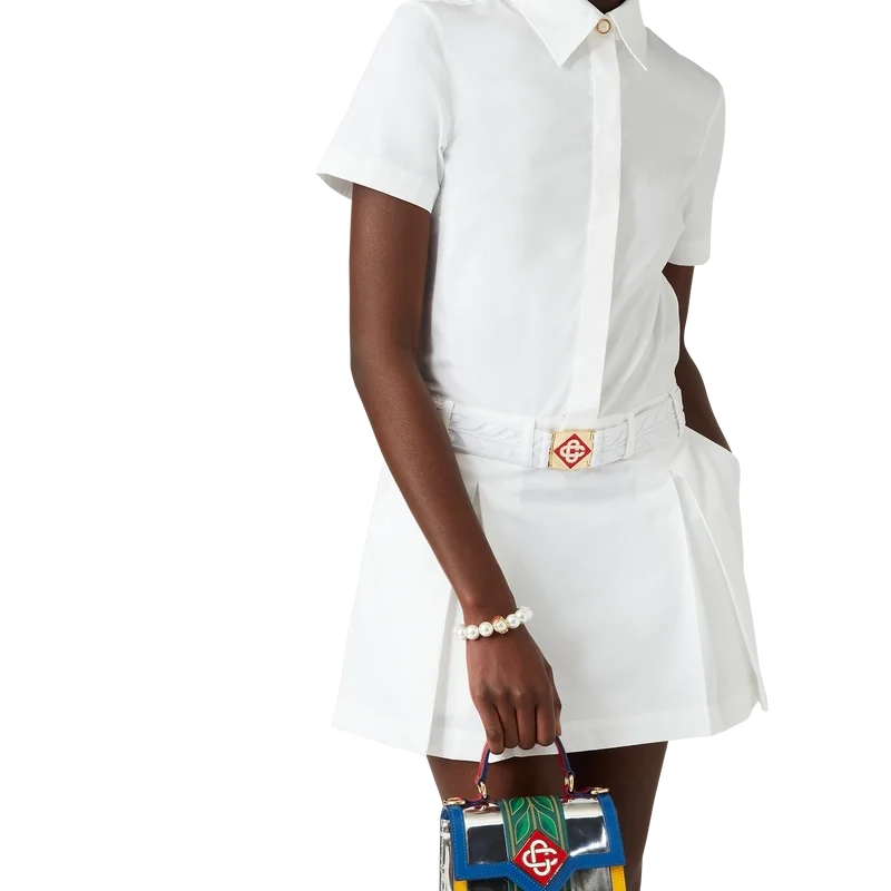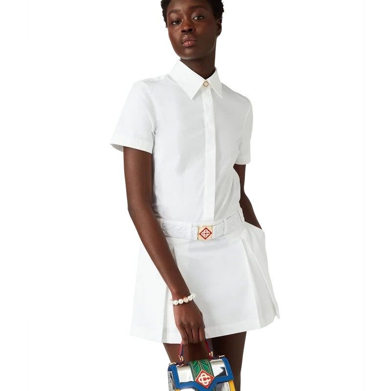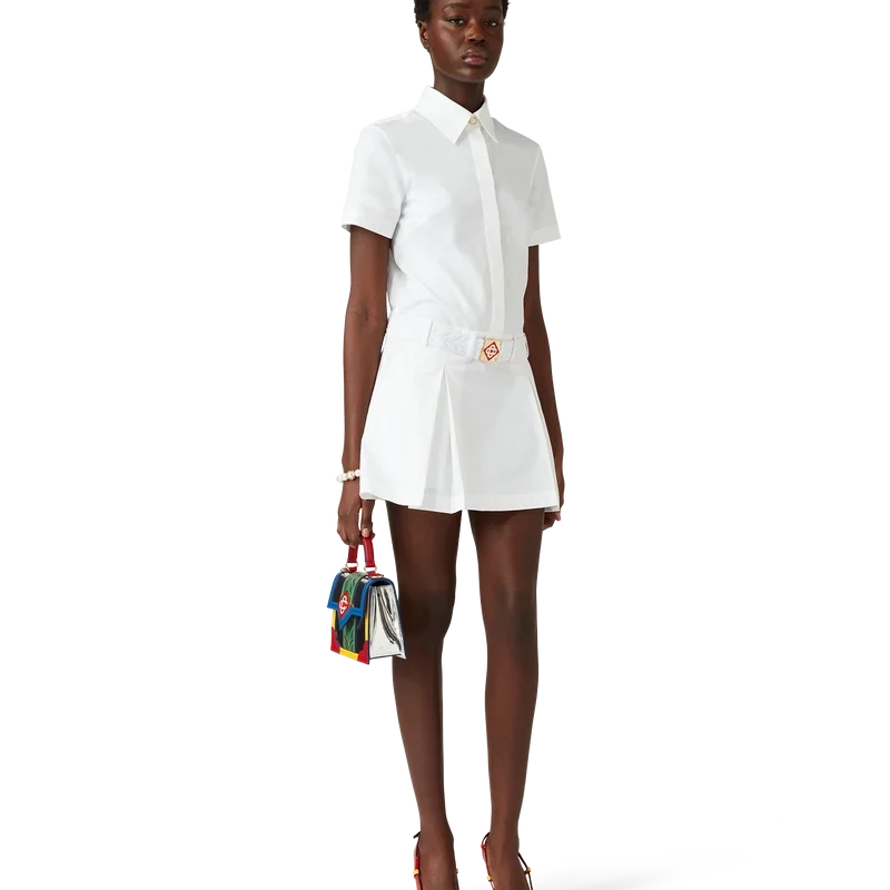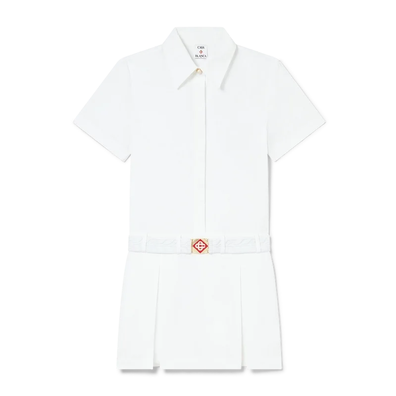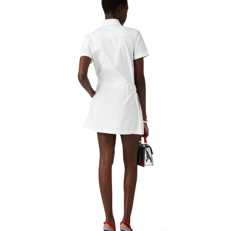 El minivestido de tenis plisado es un modelo de manga corta con silueta en A confeccionado en sarga de algodón. Se completa con cierre de botones en la parte delantera, cuello abierto, bolsillo en el pecho, cinturilla y panel de falda plisado invertido.