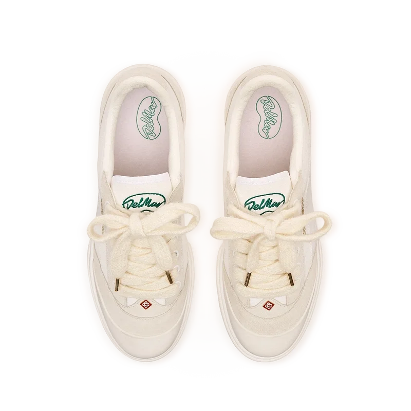 Las zapatillas blancas Del Mar para mujer toman su nombre del famoso skatepark de California de los años 80. Las zapatillas Del Mar se inspiran en los clásicos zapatos de skate de finales de los 70 y principios de los 80. Presentan muchos de los rasgos característicos de los primeros zapatos de skate, con parte superior con paneles de lona, puntera de goma, suela plana y cordones gruesos, ojales en contraste y un logotipo sutil.