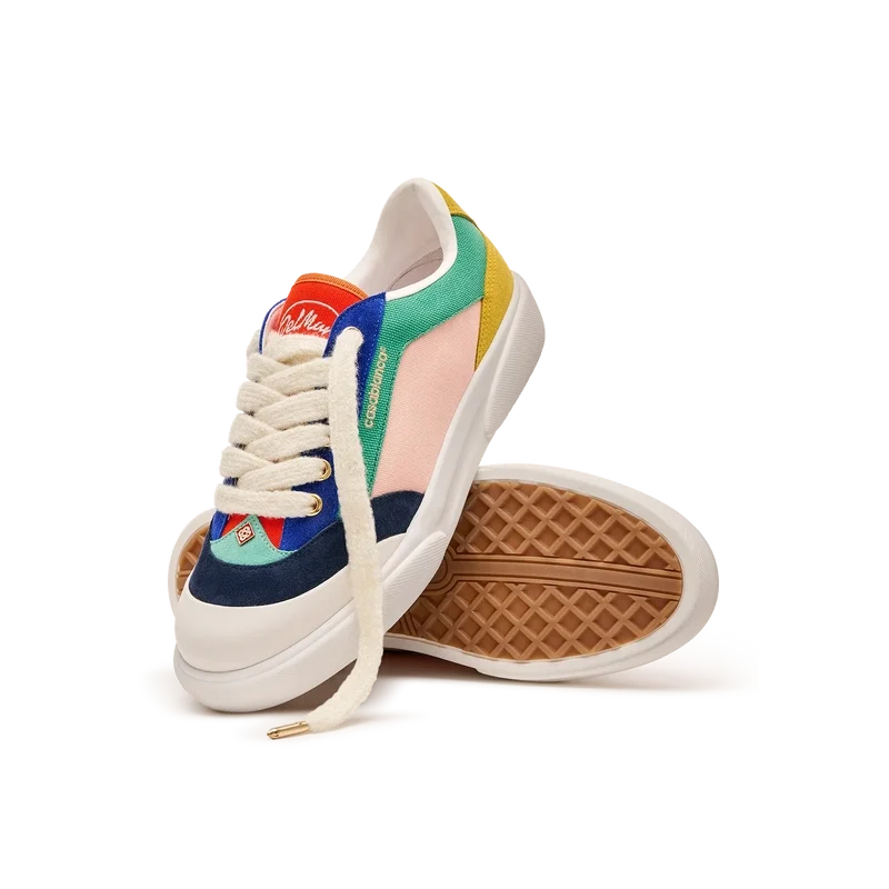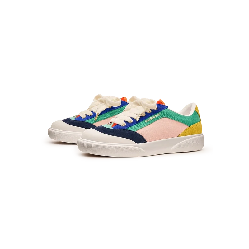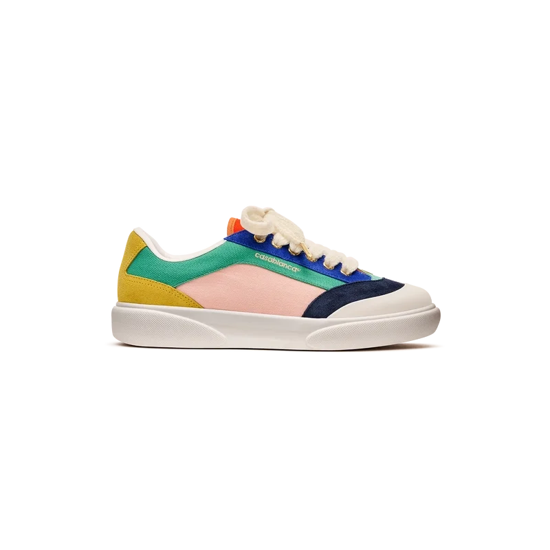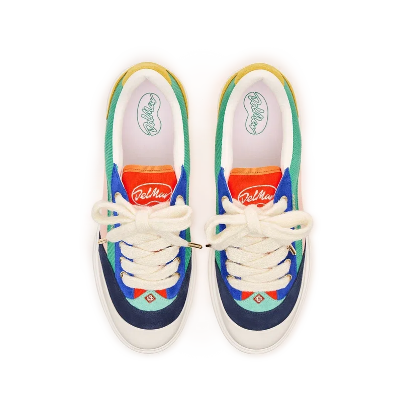 Las zapatillas multicolores Del Mar para mujer toman su nombre del famoso skatepark de California de los años 80. Las zapatillas Del Mar se inspiran en las clásicas zapatillas de skate de finales de los 70 y principios de los 80. Presentan muchos de los rasgos característicos de las primeras zapatillas de skate, con parte superior de paneles de lona, puntera de goma, suela plana y cordones gruesos, ojales en contraste y un logotipo sutil. La combinación de colores verde es el color clásico de la marca Casablanca. La combinación multicolor se inspira en los paneles brillantes y los colores contrastantes de esa época.