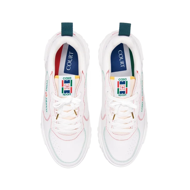 El lenguaje de diseño de las zapatillas Court refleja las siluetas icónicas de los años 90. Los colores que se presentan a lo largo de la suela de goma son una combinación de los códigos refinados del tenis y la arquitectura clásica, y crean una paleta unificada en toda la zapatilla, con un enfoque en los colores primarios contrastados por los blancos del tenis para crear una historia de colores con enfoque deportivo. Parte superior de cuero blanco en tonos similares. Parche de goma con el diamante de Casablanca en el talón. Logotipo de Casablanca Sport de silicona en el lateral. Etiqueta tejida de Court en la lengüeta. Suela inspirada en las canchas de tenis, realizada en colores primarios inspirados en el tenis. Puntas de cordones doradas. Aduanas e impuestos: ten en cuenta que se pueden aplicar aranceles e impuestos de importación en el momento de la entrega para cualquier cliente fuera de la UE. Consulte con la oficina de aduanas de su país para determinar los aranceles e impuestos de importación locales antes de realizar la compra. Si se encuentra entre dos tallas, es posible que le convenga elegir la más pequeña.