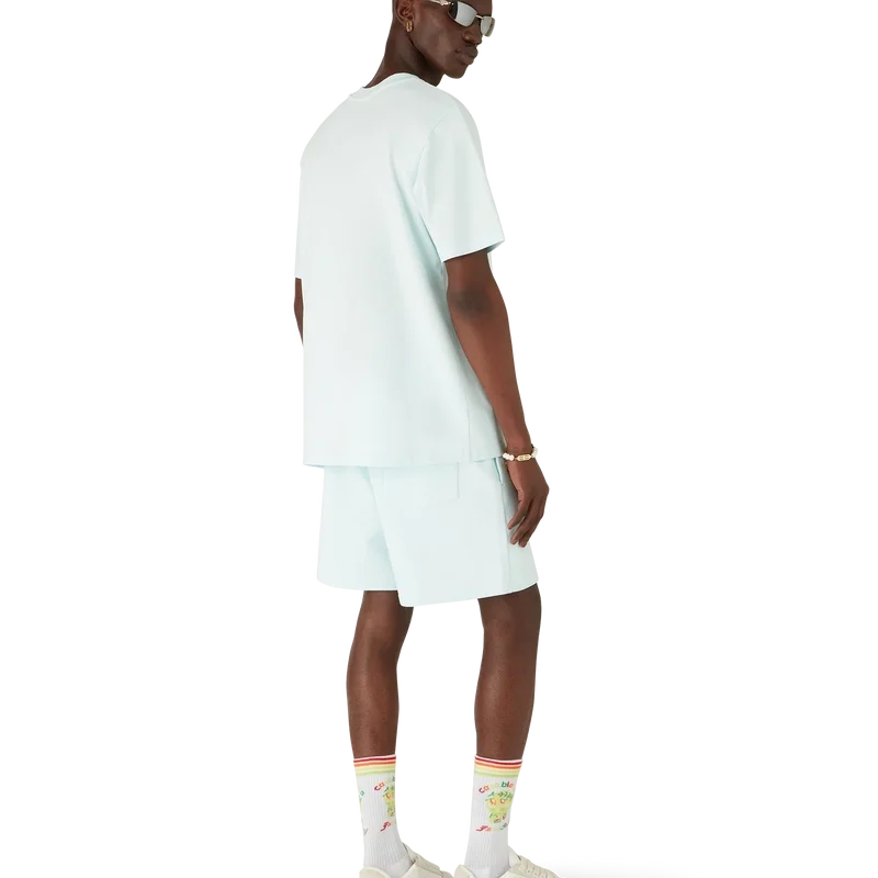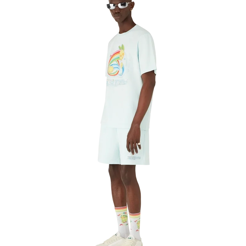 Los pantalones cortos de tenis Manga son una prenda deportiva confeccionada en tejido de algodón orgánico, con un diseño de temporada que explora el mundo del kawaii y el manga, jugando con la iconografía de Casablanca y utilizando pelotas de tenis en lugar de naranjas para darle un toque divertido. Se completan con un clásico cuello redondo.